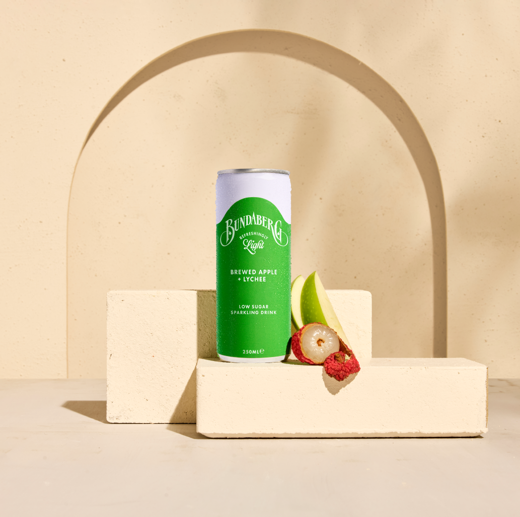 Carbonated Water, Apple Brew (Water, Apple Juice Concentrate (2.8%), Cane Sugar, Yeast), Resistant Maltodextrin, Cloudy Apple Juice Concentrate (1.4%), Lychee Juice Concentrate (1.4%), Natural Flavours, Acid (Malic Acid), Sweetener (960), Preservatives (202, 211), Caramel (150d)